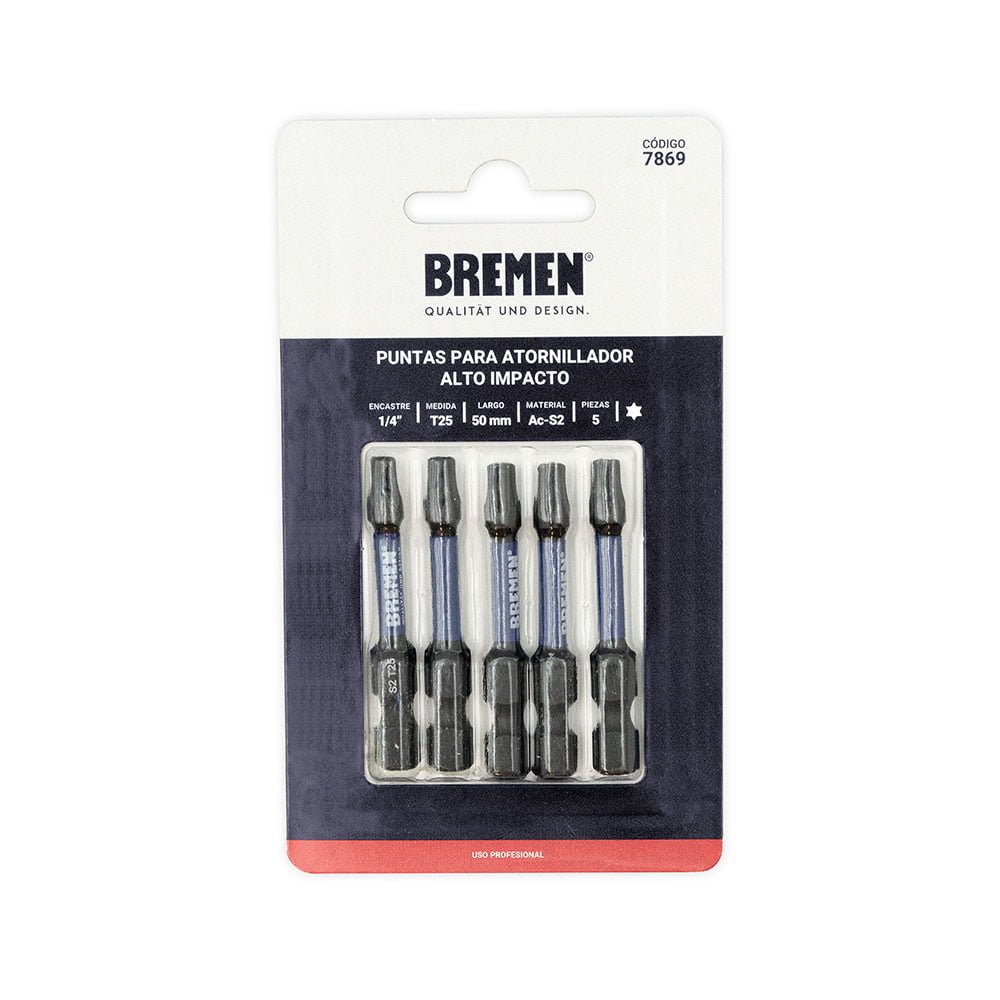 TORX:PUNTAS IMPACTO T-25 (L50mm) [Magnética] [5 unid] BREMEN®